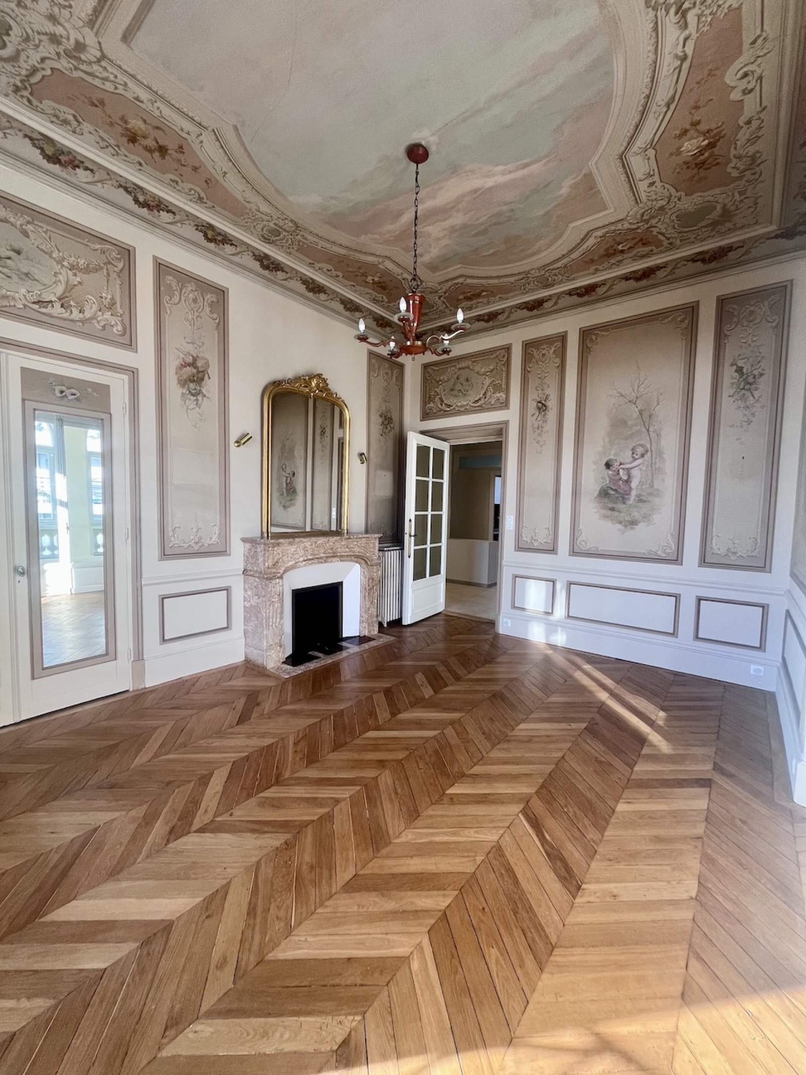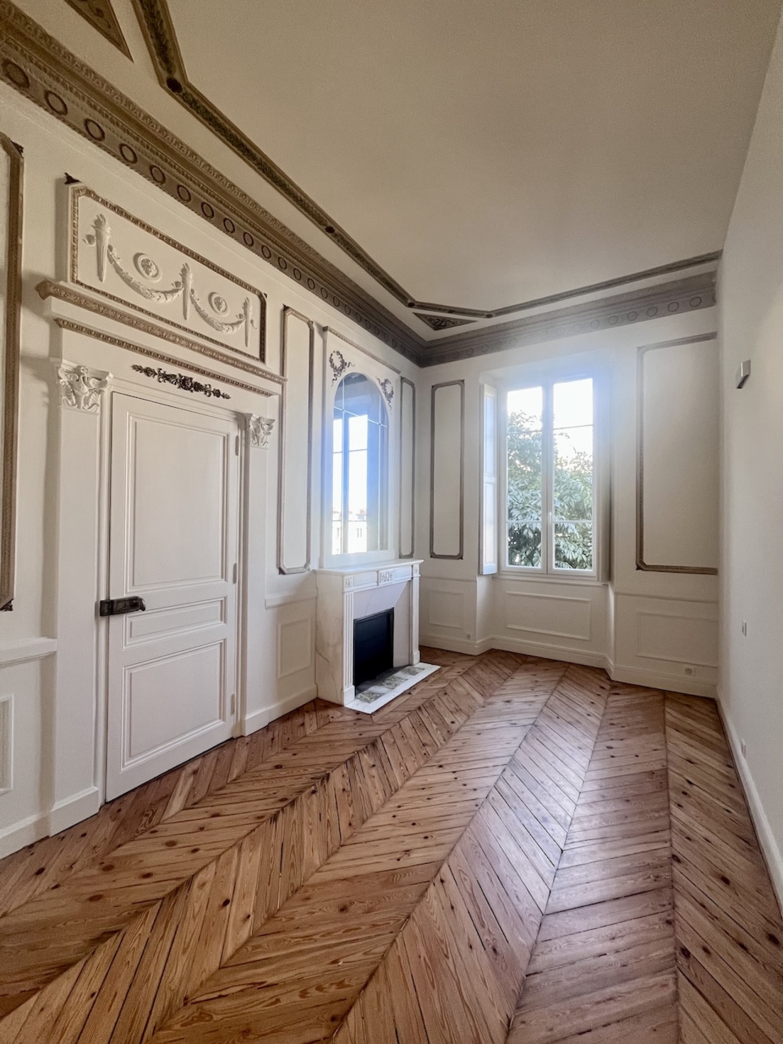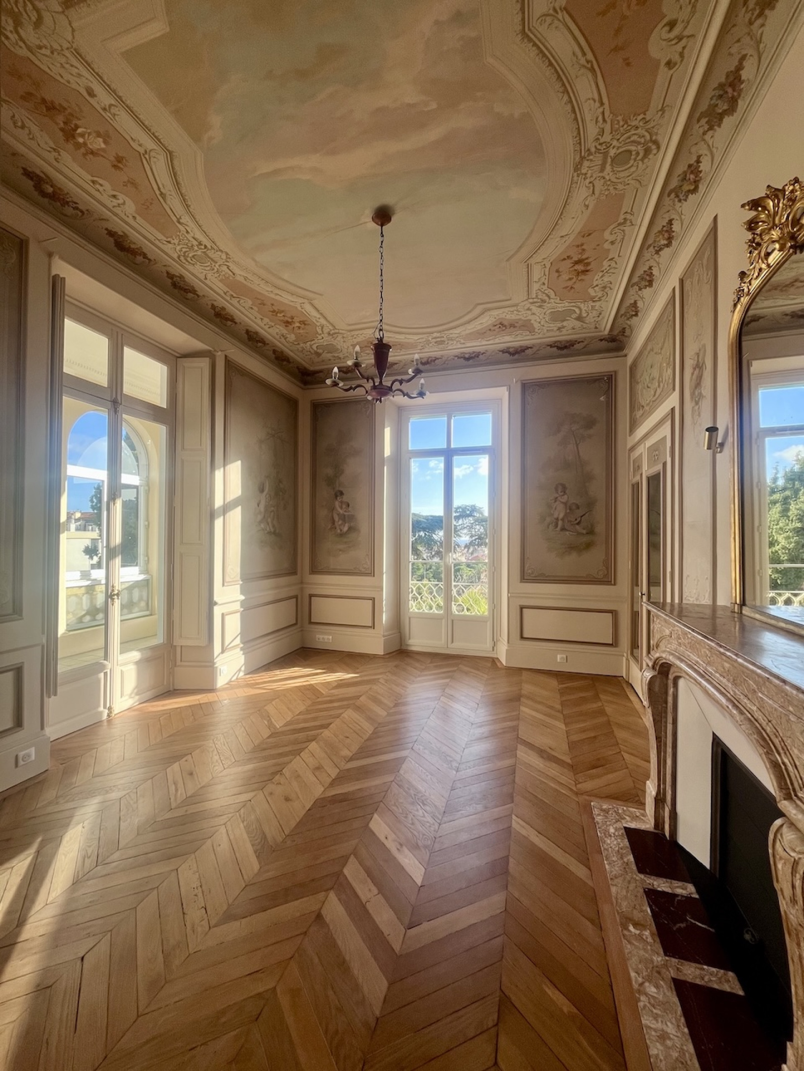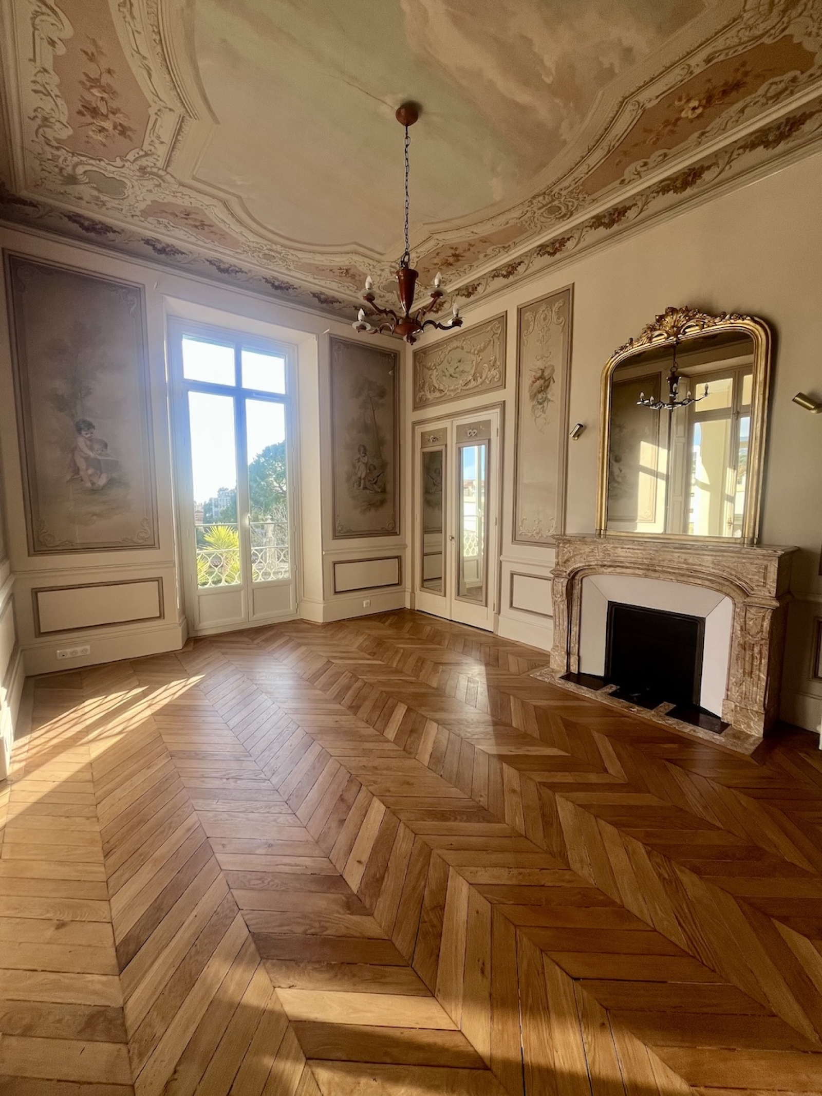 Exceptionnel appartement d'apparat de 3 pièces principales, situé au rez-de-chaussée d'un immeuble bourgeois de grand standing, inscrit à l'inventaire des bâtiments historiques de la Ville de Nice. Cet appartement a été entièrement rénové avec grand soin, tout en conservant les élèments nobles que sont les fresque et les moulures murales, les cheminées en marbre, les glaces d'époque, le parquet de Hongrie. La cuisine et la salle de bains sont neuves.