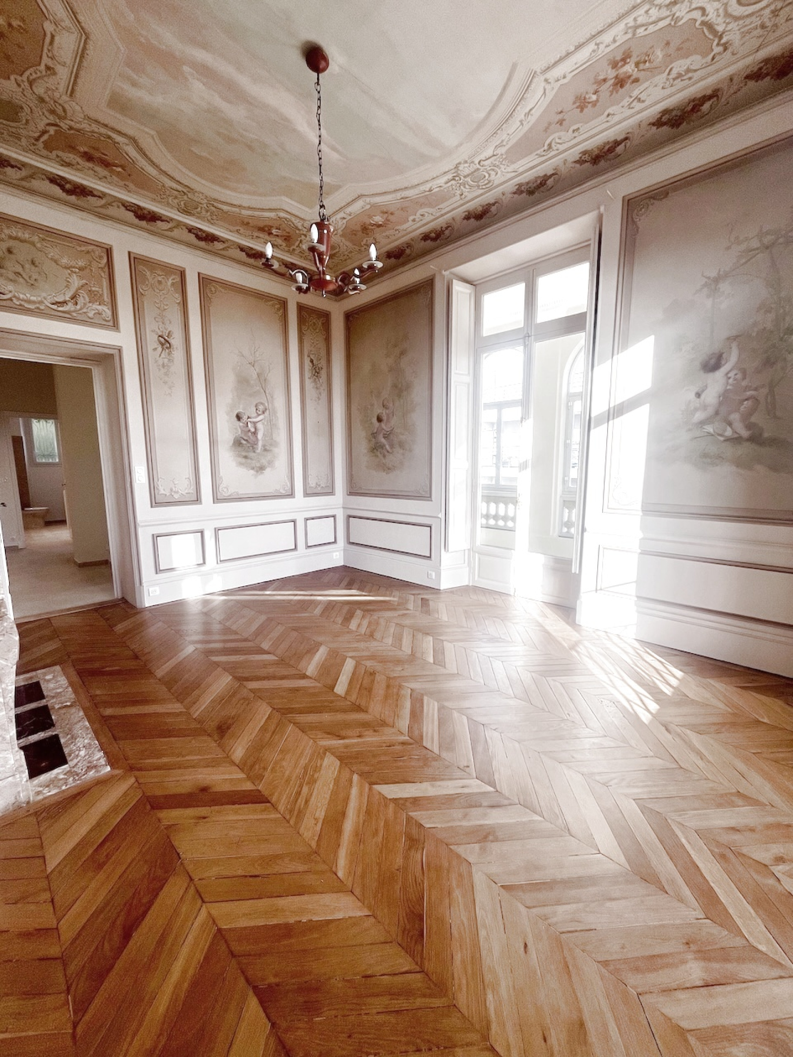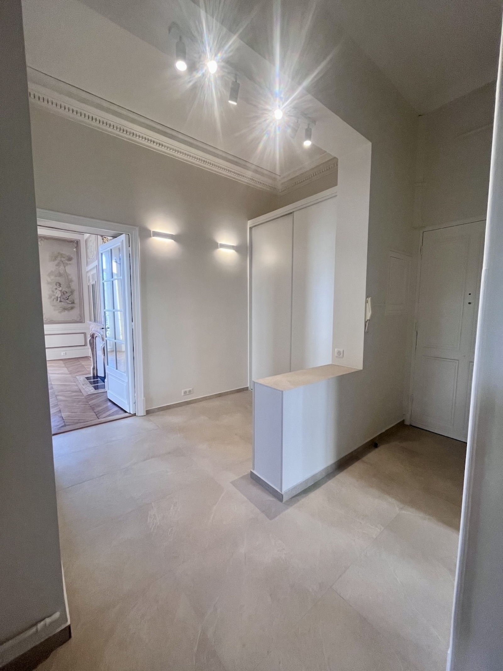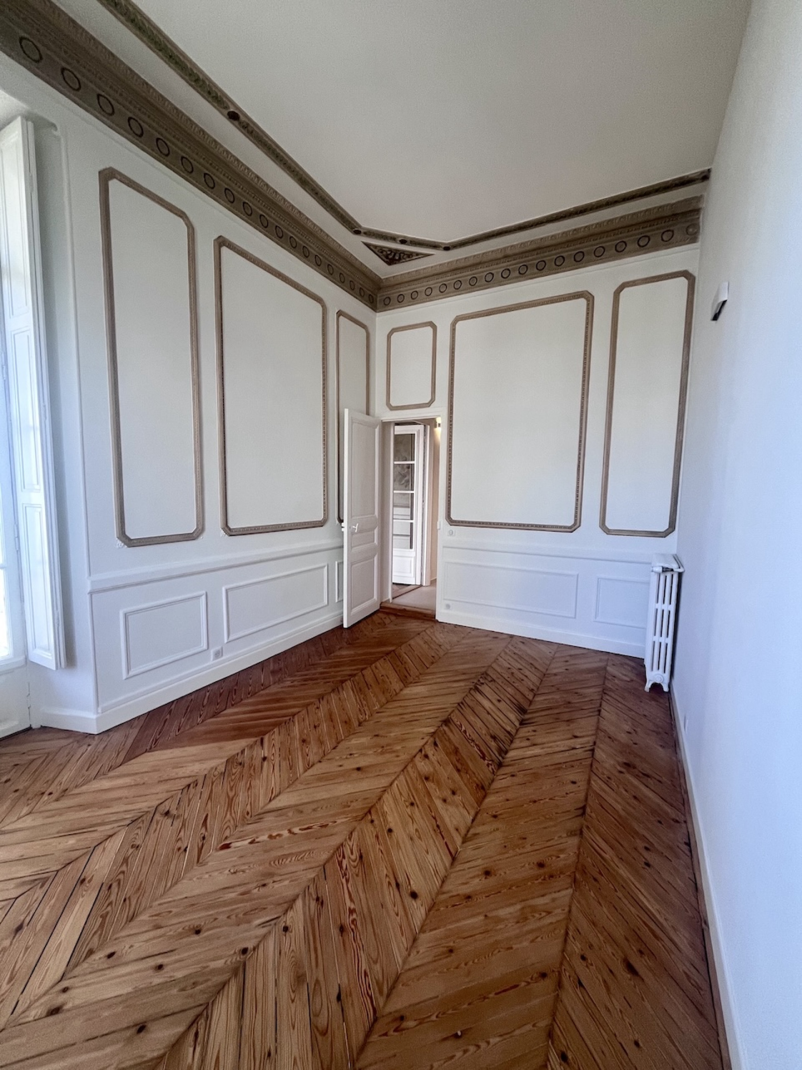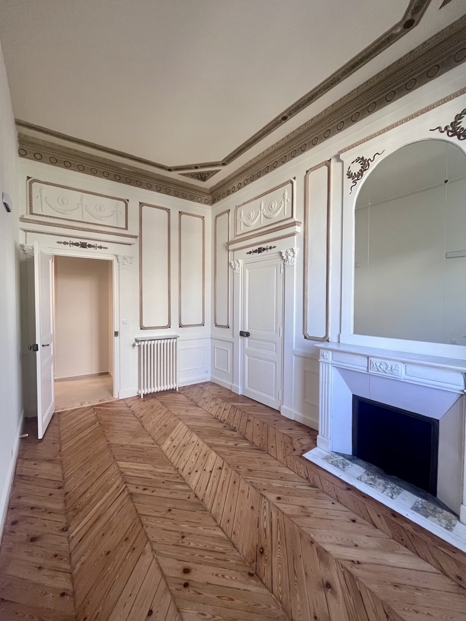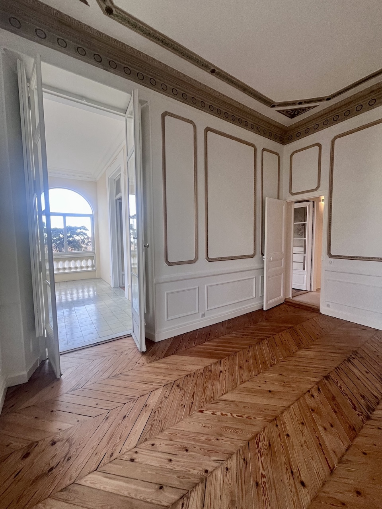 Exceptionnel appartement d'apparat de 3 pièces principales, situé au rez-de-chaussée d'un immeuble bourgeois de grand standing, inscrit à l'inventaire des bâtiments historiques de la Ville de Nice. Cet appartement a été entièrement rénové avec grand soin, tout en conservant les élèments nobles que sont les fresque et les moulures murales, les cheminées en marbre, les glaces d'époque, le parquet de Hongrie. La cuisine et la salle de bains sont neuves.