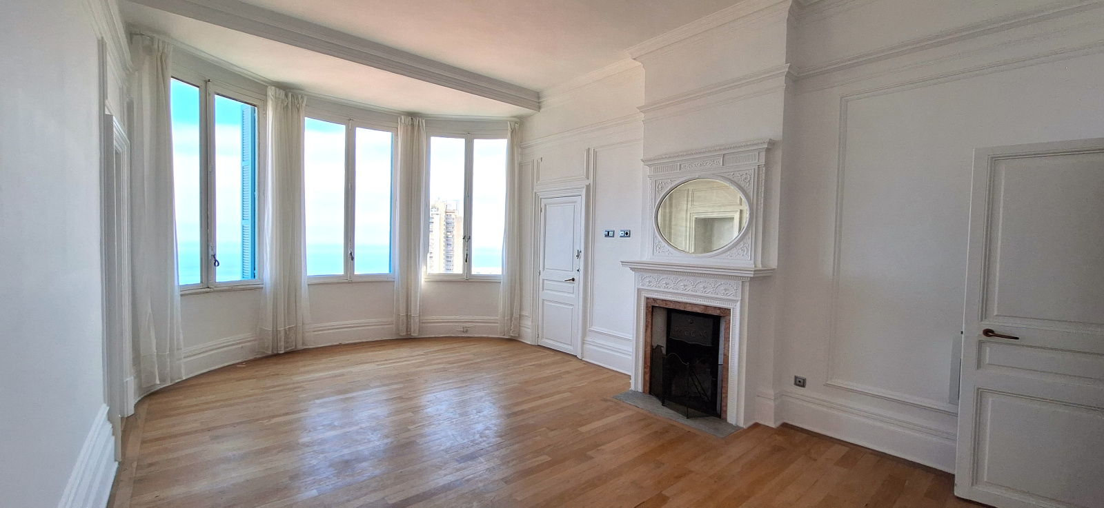 27 bd de la Turbie, 06240 Beausoleil - Rivieira Palace - A deux pas de Monaco et au quatrième et avant-dernier étage d'un magnifique palais "Belle Epoque" classé dont les façades sont entièrement refaites, sublime appartement de 103 m² disposant d'une vue panoramique sur la Principauté de Monaco et la mer. L'appartement se compose d'un hall d'entrée, un grand séjour, une cuisine indépendante équipée, une chambre de maître avec vue mer, une chambre, une salle de bains, des WC séparés. L'appartement dispose de belles hauteurs sous plafond, de parquets magnifiques et de beaucoup de charme. Exposition plein sud et calme absolu. Parking collectif.
